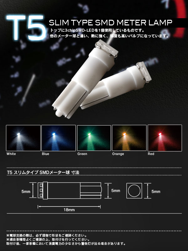 T-5 SMD-LED2連メーター球幅3mmのSMD-LEDを2個使用しているものです。 |