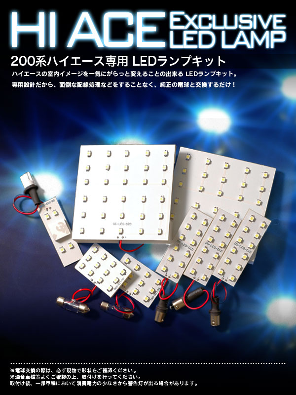 ハイエース 200系 GL専用設計 LED ルームランプ ホワイト セットハイエース200系専用 スーパーGL純正ランプと取り替えるだけです。